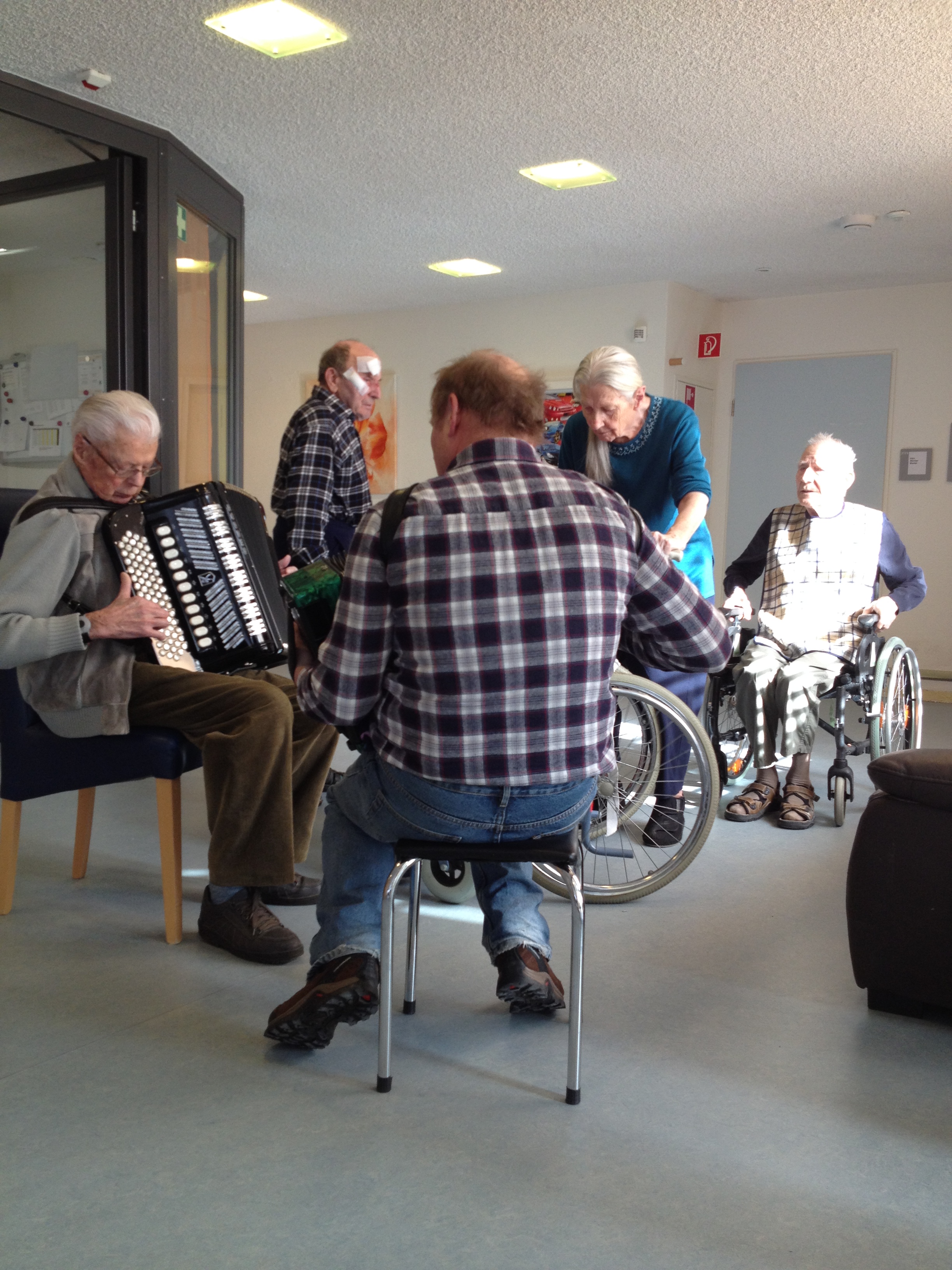 Ich bevorzuge die Arbeit im sogenannten „offenen Setting“, das heisst, dass die Alltagsumgebung der Bewohner zum „Therapieraum“ wird, was vor allem in der Begleitung von dementen Menschen von Vorteil ist. Das Potential von Musiktherapie (MT) in aktiver sowie in rezeptiver Form stellt sich folgendermassen dar: