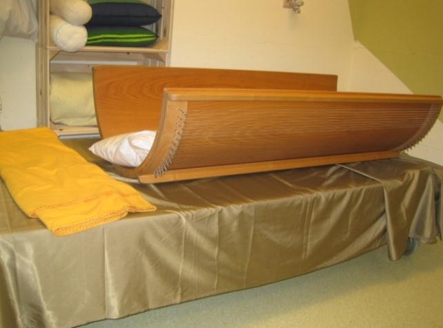 Die Klangwiege ist einen spezielle Form des Monochords. Der Klient liegt in oder sitzt vor einer Halbschale und nimmt den Klang gleichgestimmter Saiten hörend und spürend auf. Man kann zwischen zwei Tönen (einem hohen und einem tiefen) wählen.